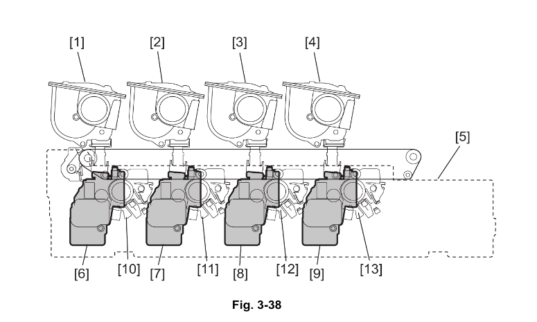 [5] is the waste toner box. It is where waste toner is deposited and commingled together, from all colors. It gets there by way of some cleaning blades on the drums (part of [10], [11], [12], and [13]), and on the transfer belt, which is between the process units on the bottom and the toner cartridges on top. The “latent” image (as unused toner) is transferred from the process units’ drum to the transfer belt, which on the right (unpictured), there is a roller that pinches the transfer belt against the paper to transfer the image to the paper, after which it is sent to the fuser, where the toner is melted and the process is complete. So, all you really need to know is: process unit makes toner image, transfer belt transfers the image to paper, 1st transfer roller helps pinch and transport paper against the TB, and the fuser melts the toner.